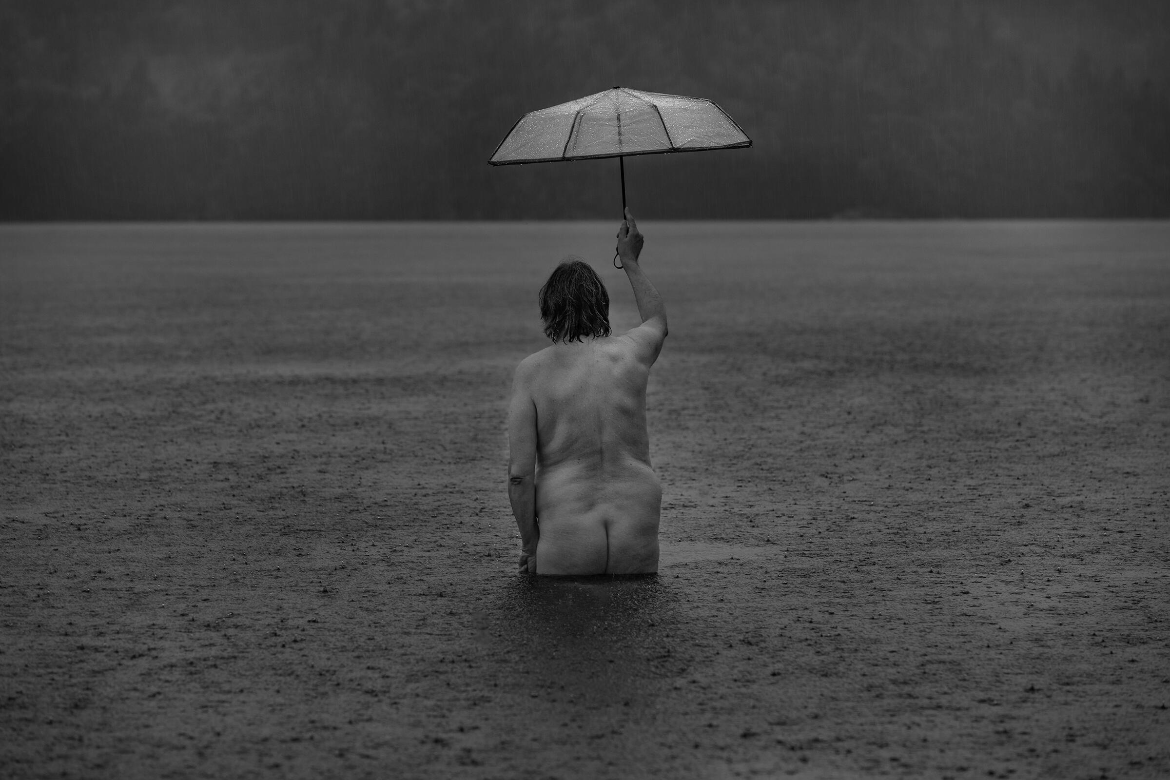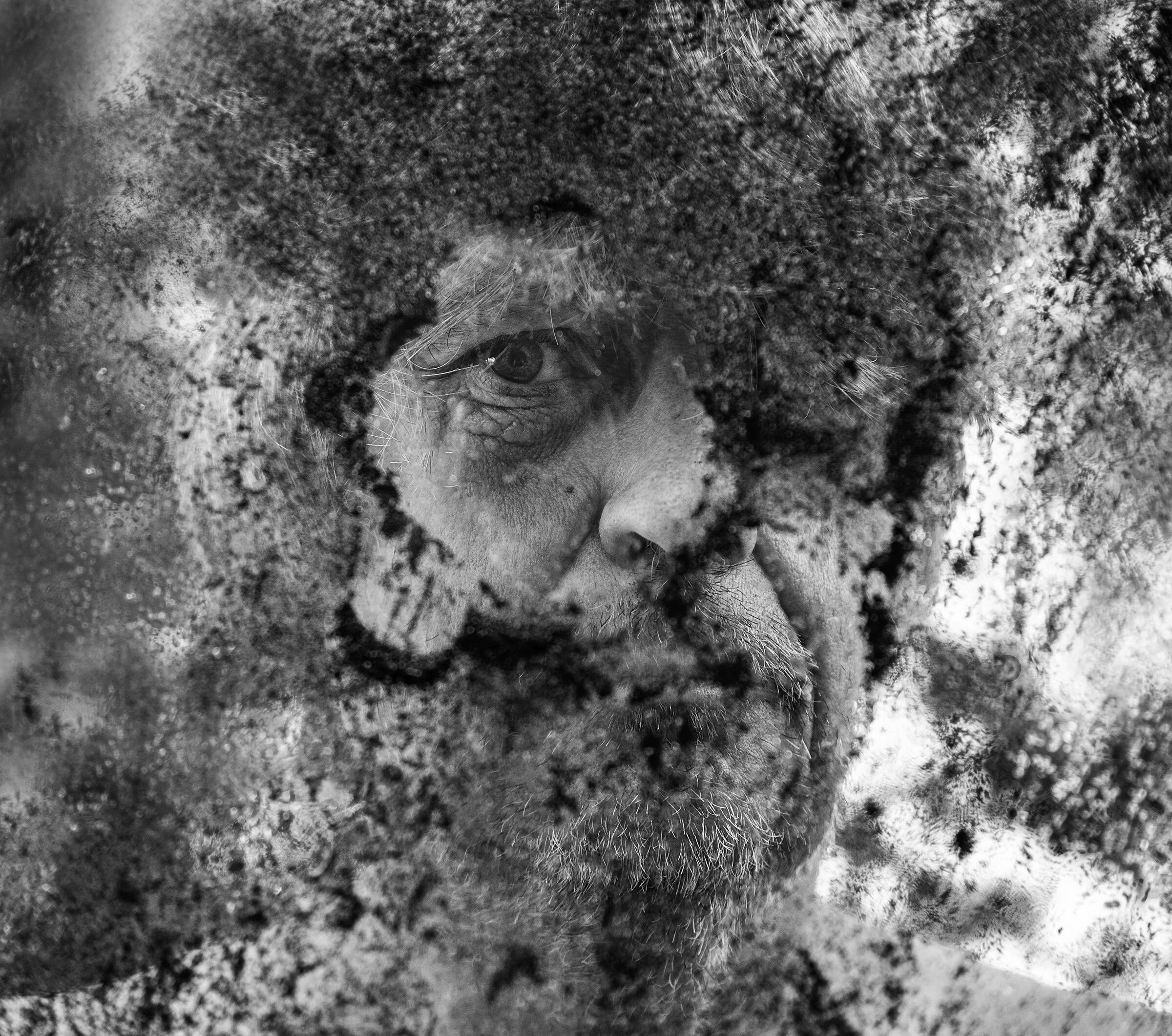 Nydelig og spennende bilde med mange tolkningsmuligheter. Et ansikt som er skjult og et speilbilde i hard stein. Liker at kroppen og berget er i samme landskap med linjer og bølger. Flott bilde.