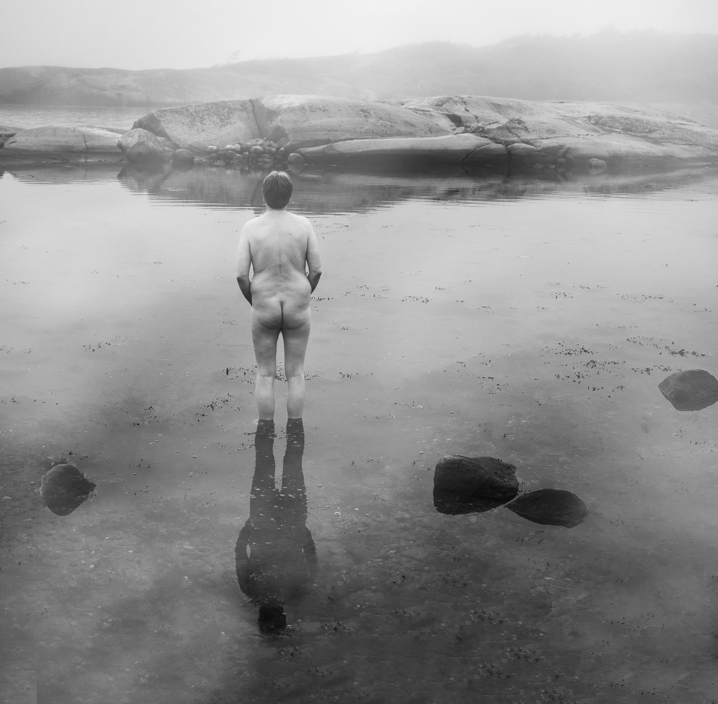Flott bilde der de runde, myke formene i svabergene og steinene går igjen i formene på kroppen, og vice versa. Om man hadde med enda mer av landskapet kunne man få et enda bedre inntrykk av mennesket i møte med naturen - men ved å beholde utsnittet som det er leser man til gjengjeld motivet som en sammenstilling av former, og om man myser er det nesten noe litt abstrakt og modernistisk over det, der man først og fremst leser bildet som rundinger og ovaler som er svært harmonisk plassert på en firkantet flate. Et bilde som skiller seg ut både motivmessig og komposisjonelt.