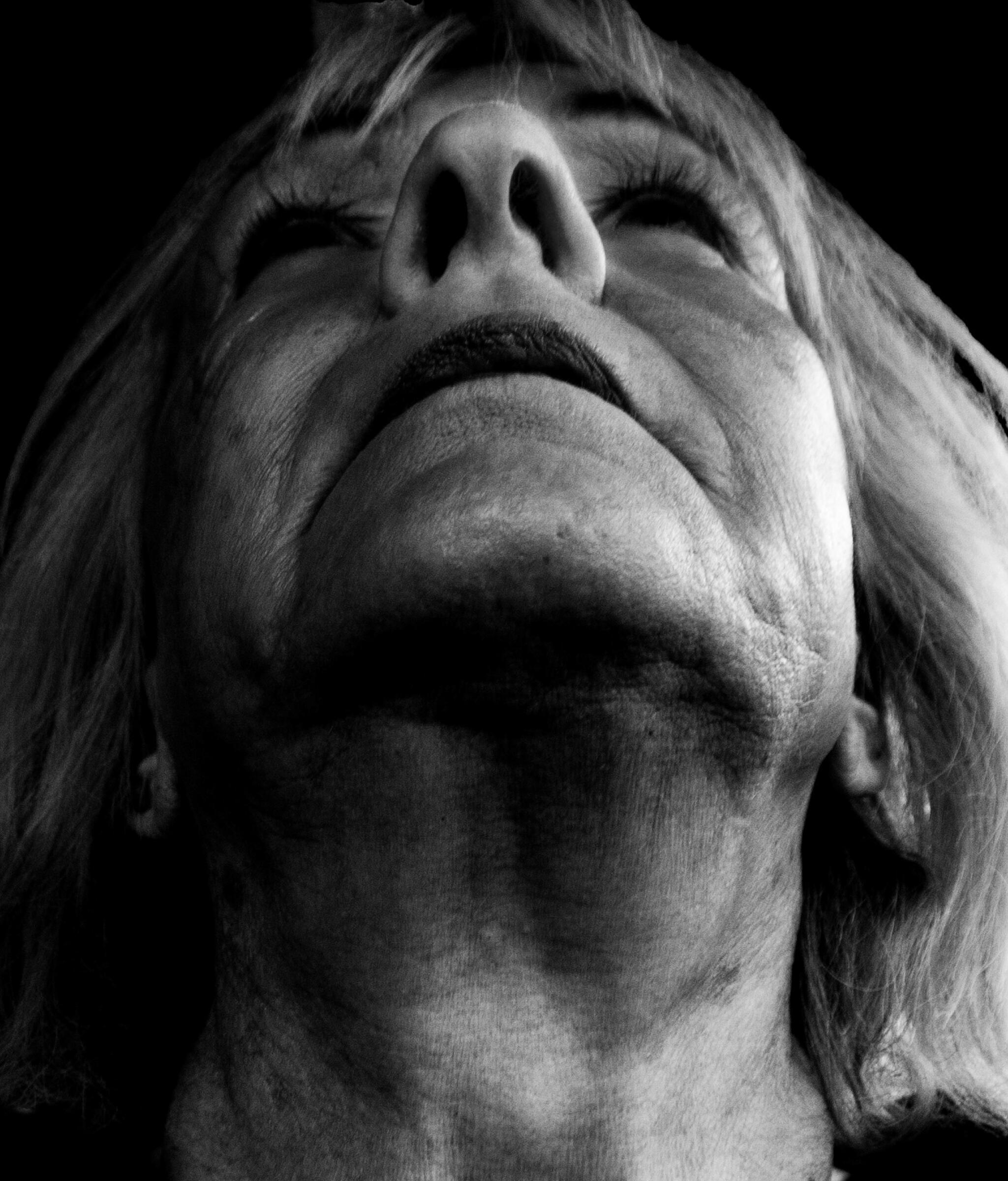 Jeg heier på portretter av modne kvinner som verken overdriver eller skjuler tidens herjinger i kropp og sjel. Nedenfraperspektiv på neser er sjelden noen suksess, men her balanserer den godt ut med øvrige elementer i bildet.