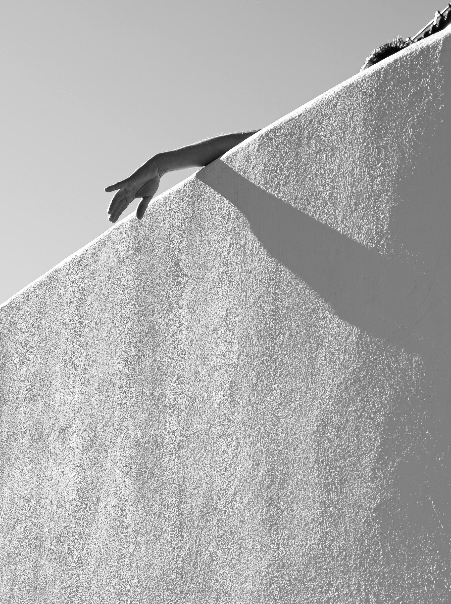 Et enkelt og velkomponert bilde og "spot on" på temaet. Skyggen bidrar til spenning i bildeflaten, samtidig som det er en levende og fin struktur i overflaten på muren.