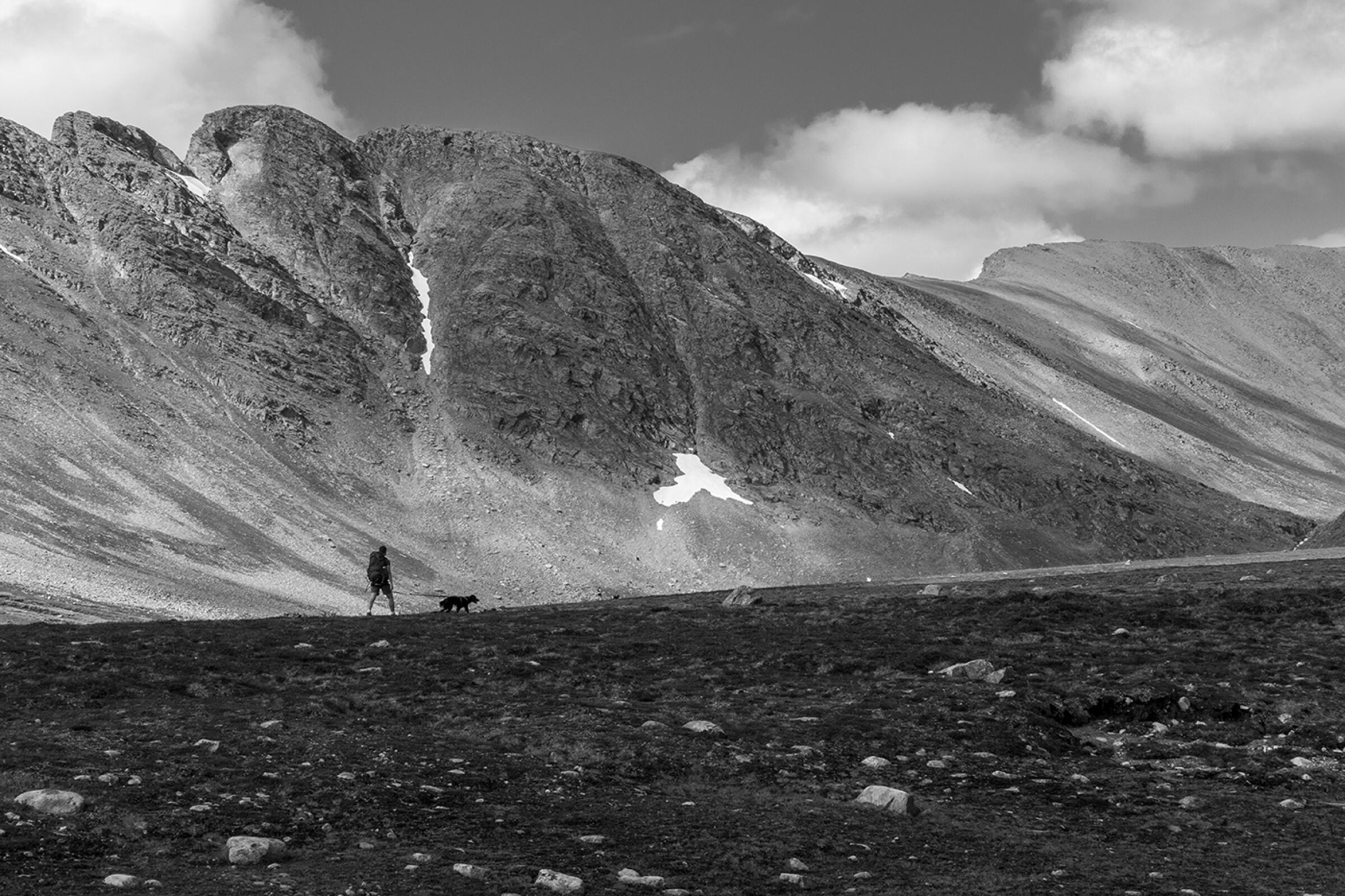 Det er noe merkelig med dette bildet, horisonten buer og det er mye digital støy i himmelen. Men de er på vandring, ser ut som du leter etter noen, fin dybde og dramatisk himmel