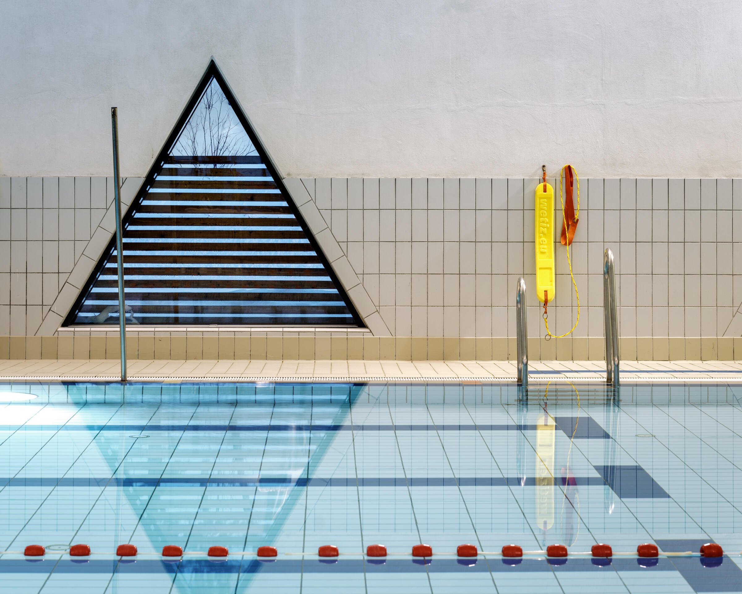 Også et konkret motiv som nesten blir abstrakt, og der det konkrete motivet blir underordnet linjene. Det er godt fanget med vinduet ute på siden, godt balansert av den gule redningsbøya. Linjene og refleksjonen i vannet løfter bildet, og den røde baneskilleren i forgrunnen gir fin dybde til bildet.