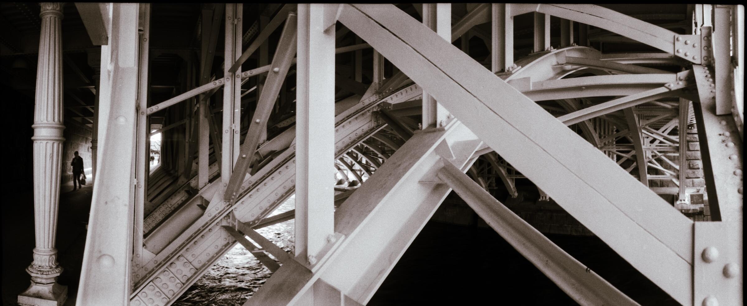 Et herlig kaos av linjer i alle retninger. Bildet er ganske tidløst - det er umulig å si om det er fra 1930-tallet eller 2025. Personen uten til venstre gjør bildet spennende.