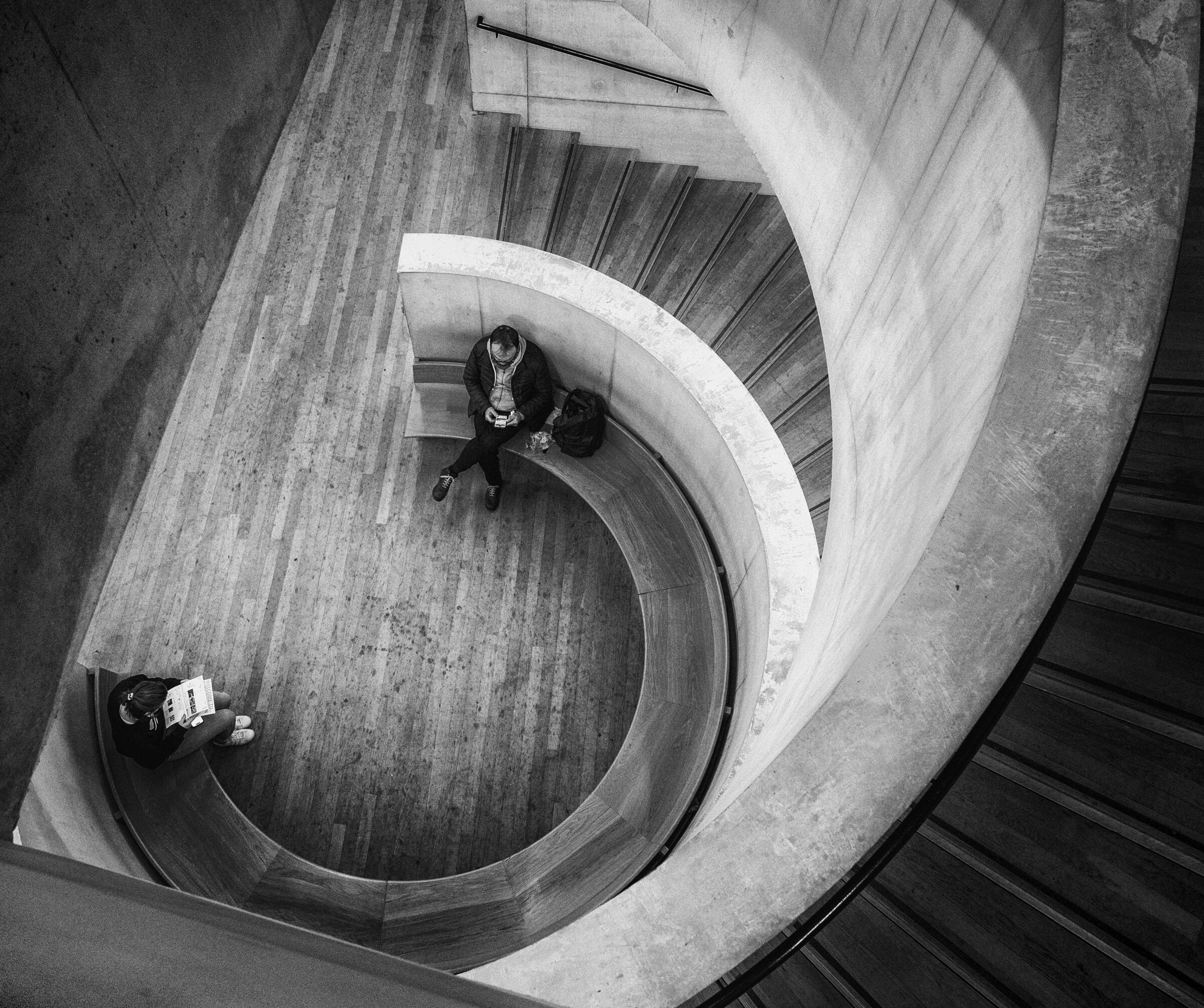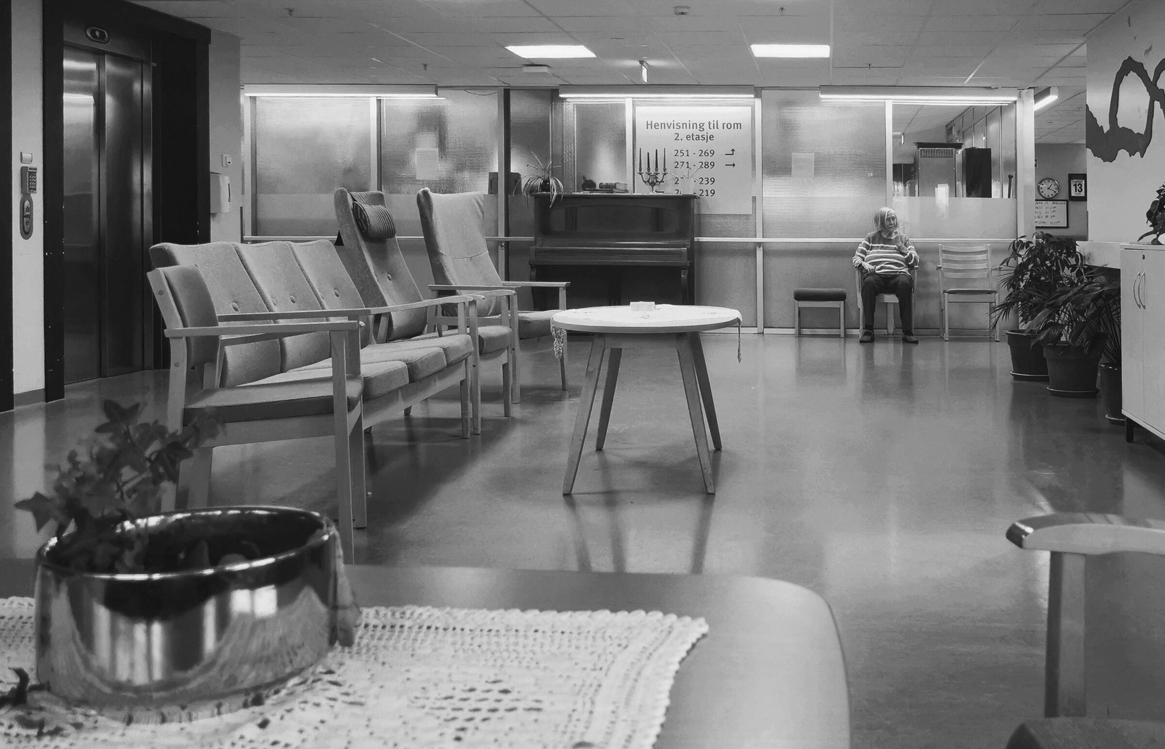 En situasjon mange kan føle seg, liten brikke mot det store Systemet. Bildet griper en i sjela og det monokrome uttrykket hindrer fargedistraksjon - ikke det at slike rom for ofte en fylt med livlige farger, kanskje bortsett fra i juletider?