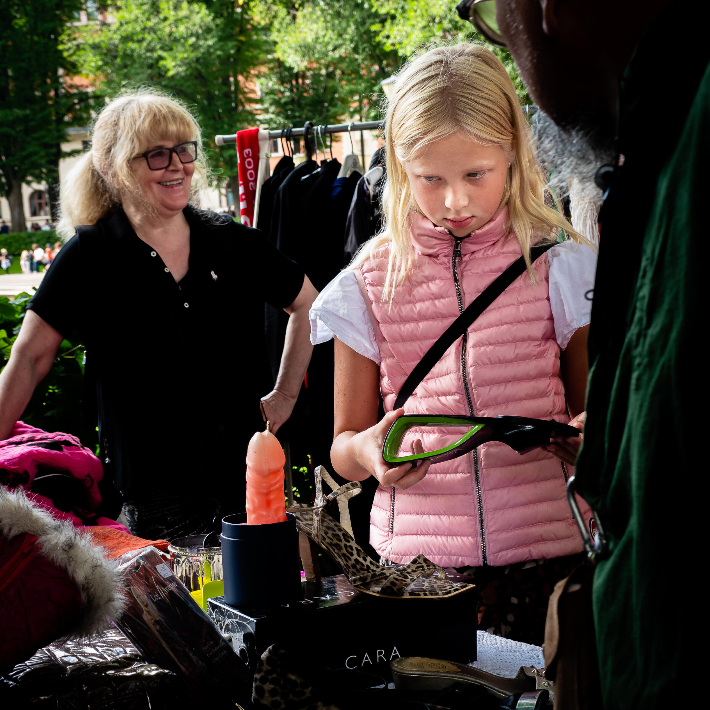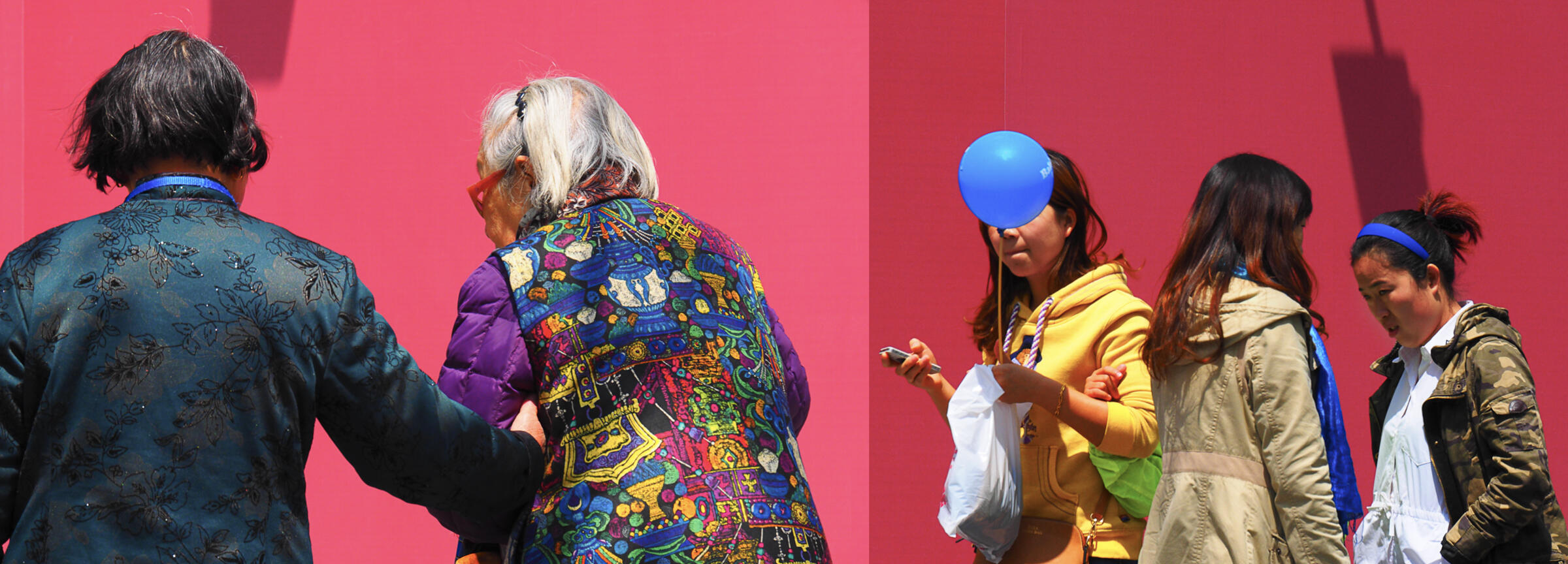 Gjentakende mønster er aldri feil i et gatefoto, og her ser vi to personer som har på stripete genser og som sitter på en zebra. Det er godt gjort å klare å se når du er på tivolo - i et miljø vi kan tenke oss er støyete, og med masse synsinntrykk.
