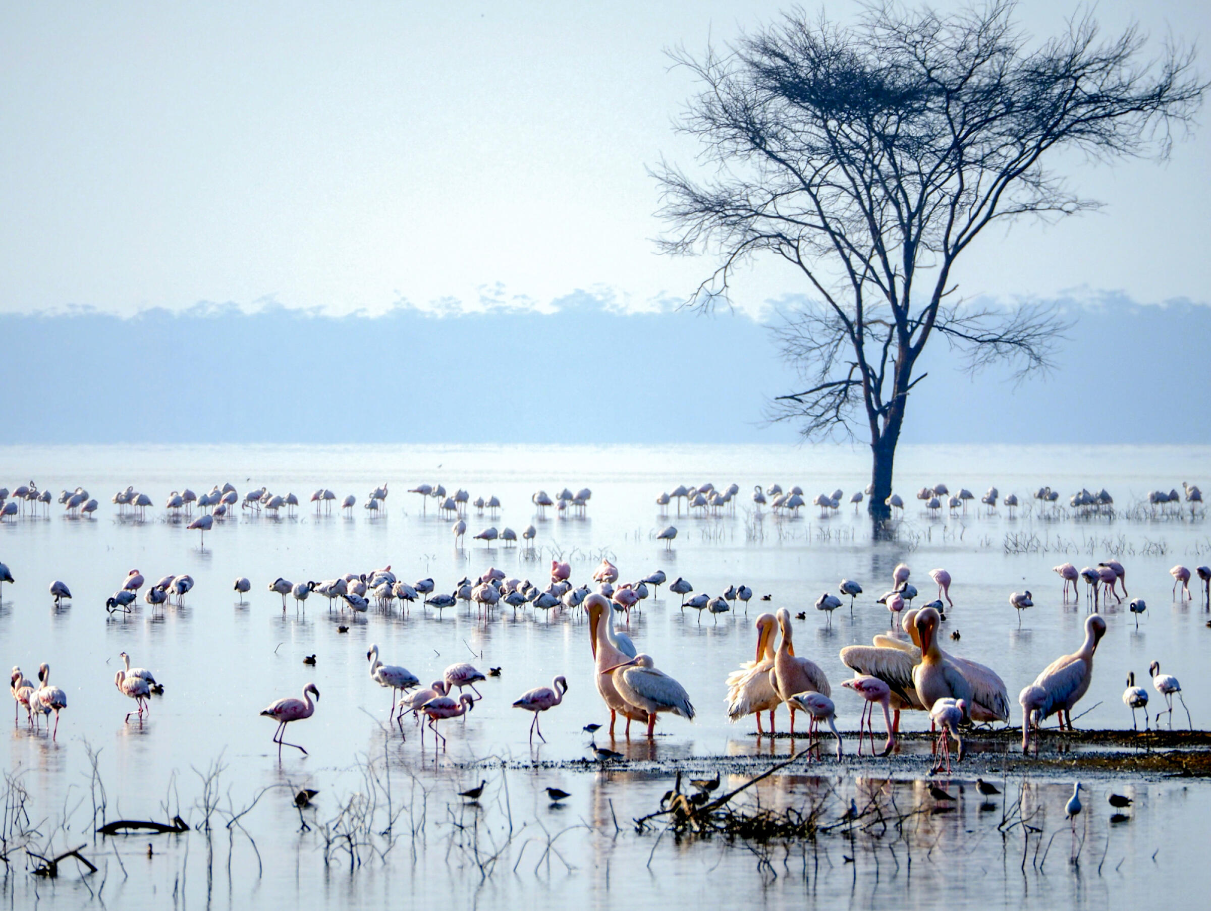 Pelikaner og flamingoer i Lake Nakuru |