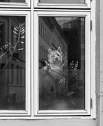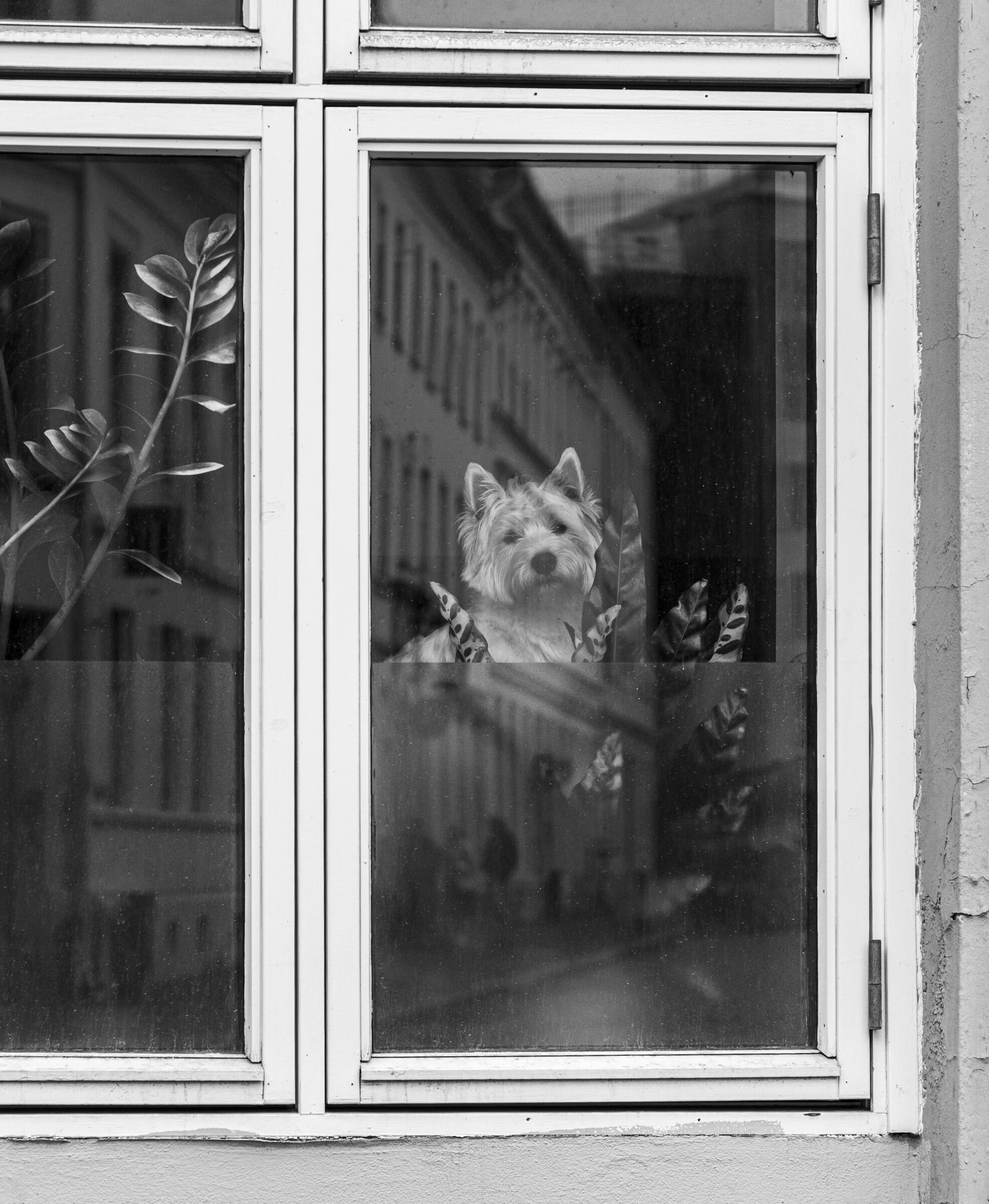 Inne i et vindu, men ute |